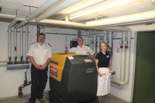 Wir bedanken uns herzlich bei Herrn Klaus Händler (Geschäftsführer der Firma apikal Drucklufttechnik) für die Spende des neuen Kolbenkompressors i.Comp 8 Tower. Nach 17 Jahren können wir nun ein neues Modell in Gebrauch nehmen welches mit einem Fördervolumen von 404l/min die feste Druckluftversorgung unserer drei Fahrzeuge und der Werkstatt sicherstellt. Neben einer sehr leisen und ölfreien Arbeitsweise weist der i.Comp 8 Tower auch eine leichte Wartungszugänglichkeit und die Möglichkeit auf, bei Störungen direkt die Gerätewarte zu informieren.