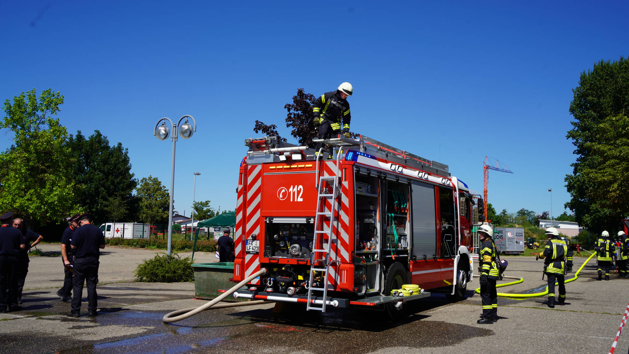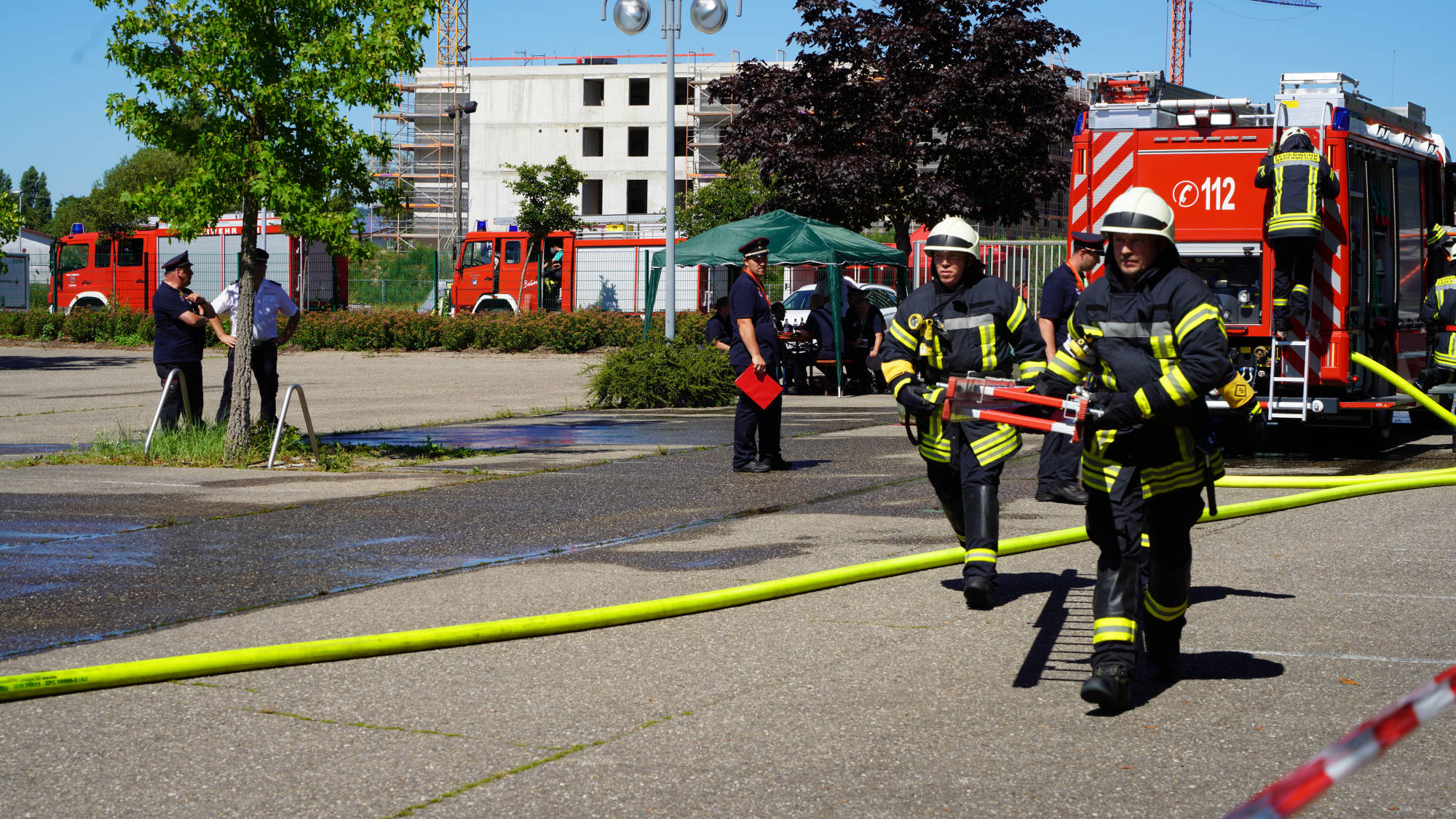 Nach drei intensiven Monaten der Vorbereitung war es für uns am Samstag, den 02.07.2022 endlich soweit. Zehn Kameradinnen und Kameraden aus der Gesamtwehr Badenweiler, bestehend aus der Abteilungen Lipburg-Sehringen, Schweighof und Badenweiler, traten in Staufen zum Leistungsabzeichen Bronze an. Seit dem 30.03.2022 wurde jeden Mittwoch ab 20:00 Uhr am Gerätehaus in Badenweiler geprobt. Die Anforderungen des Leistungsabzeichens bestehen darin, einen Löschangriff durchzuführen. Zuerst muss bei diesem eine Wasserversorgung gelegt werden. Das angrenzende Gebäude wird währenddessen mit einer Riegelstellung vor einem Brandübergriff geschützt. Zusätzlich zu der durchzuführenden Löschaufgabe muss eine Person aus dem ersten Obergeschoss eines Gebäudes über eine zweiteilige Steckleiter gerettet werden. Die Durchführung der Leistungsübung darf sieben Minuten nicht überschreiten.