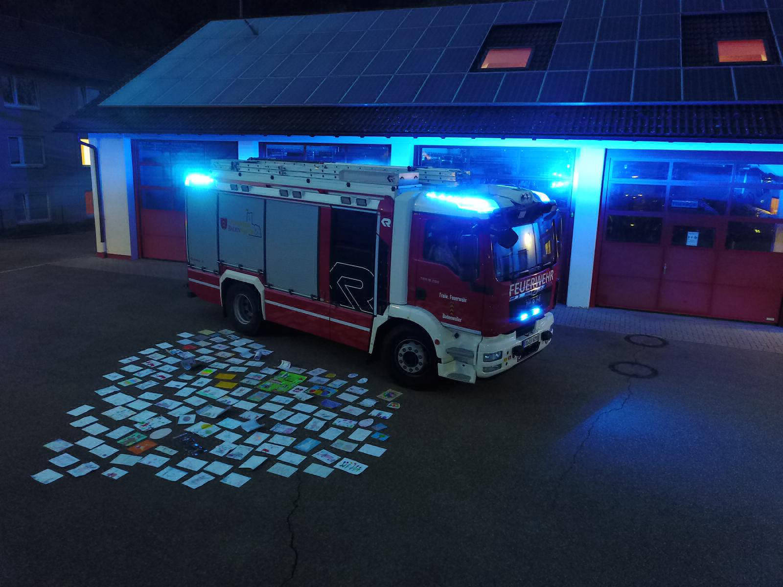 Nachdem uns eine ungefähre Anzahl an Bildern mitgeteilt wurde, wurde unser Organisations-Team erst so richtig aktiv. Für mehr als 150 Kinder mussten Ostertütchen entworfen und bestückt werden. Mit 180 Schoko-Osterhasen, 360 Eiern, 180 Teighasen, 300 Stickern und 200 Tüten sowie einigen Sachspenden waren wir bestens vorbereitet um die Tütchen zu packen und anschließend in einer ausgearbeiteten Route zu verteilen. Neben unserem SW 1000, waren auch unser LF 10 sowie das MLF aus Schweighof und das LF 8 aus Lipburg im Ort unterwegs. Nach zwei Stunden hatten unsere vier Gruppen ihre Verteil-Aktion beendet und alle konnten wieder in das Gerätehaus zurückkehren.