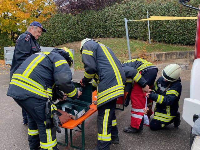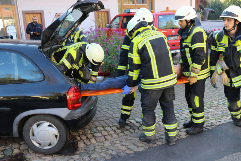 Am Samstag, den 26. Oktober, fand die traditionelle Rallye der Feuerwehr Badenweiler statt. Ausgeloste Gruppen der Gesamtwehr sowie drei Gastgruppen aus Vittel, Numborn und Müllheim mussten im gesamten Ortsgebiet feuerwehrtechnische Aufgaben bewältigen. Nach der Beantwortung eines Fragebogens im Gerätehaus, bei welchem die Teams ihr Fachwissen über die Feuerwehr und den Ort unter Beweis stellen mussten, ging es weiter zu den einzelnen Stationen. Ein Kellerbrand mit starker Rauchentwicklung und vermisster Person erwartete die Feuerwehrleute in Schweighof. Aber auch bei einem Autounfall in Lipburg mussten die einzelnen Gruppen ihre Teamfähigkeit beweisen und den verletzten Autofahrer schnell aus seiner misslichen Lage befreien. Eine vermeintlich starke Verunreinigung des Klemmbachs mit Öl (Sägespänen) mussten die Gruppen bei der letzten Station in Oberweiler am Bethesda unter Kontrolle bringen. Auch der Spaß kam bei dieser Rallye nicht zu kurz und so gab es an der „Spaßstation“ am Parkplatz Süd neben einer selbst gebauten Kuh die es zu melken galt auch ein Wildschwein, welches mit Pfeil und Bogen erlegt werden musste.