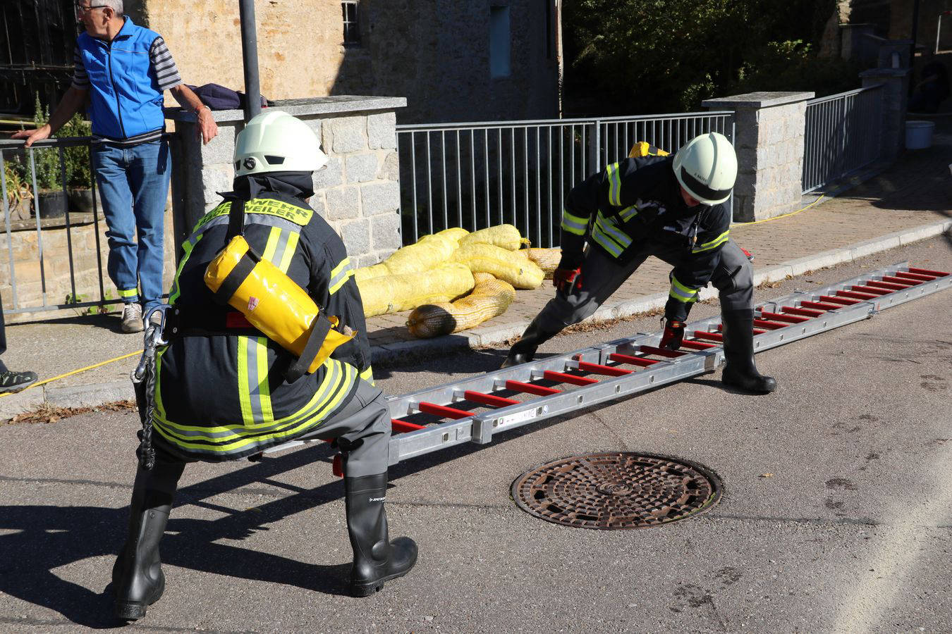 "GAMS" ist für uns hier das wichtigste Stichwort. GAMS bedeutet: Gefahr erkennen, Absichern/Absperren, Menschenrettung, Spezialkräfte anfordern. Gemeldet wurde in unserer Feuerwehrprobe ein PKW-Unfall mit auslaufenden Betriebsmitteln. Vorgefunden wurde ein PKW mit Anhänger, auf welchem ein kleiner Container gelagert war. Dieser hatte ein Leck aus welchem eine gelbliche Flüssigkeit heraustropfte. Dass wir uns nicht immer auf die durch beispielsweise Anrufer gemeldete Situation verlassen können, wurde hier ein weiteres Mal deutlich. Die Gefahr der auslaufenden Substanz wurde schnell erkannt (G) und der Bereich weiträumig abgesperrt (A). Der Autofahrer der noch versucht hatte, das Leck zu schließen, wurde aus dem Gefahrenbereich gebracht und betreut (M). Würden weitere Feuerwehrkräfte oder Spezialeinheiten mit für solche Situationen geschultem Personal benötigt, könnten diese über die Leitstelle zum Einsatzort nachalarmiert werden (S).